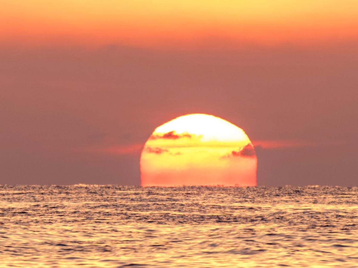 O Sol fica vermelho e, o céu, tingido de tons laranja, vermelho profundo ou mesmo roxo.