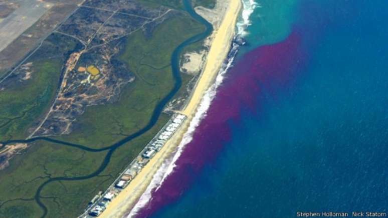 Cientistas americanos e mexicanos estão tingindo de rosa as águas nas praias da Califórnia e de Tijuana, no México, para verificar como a água contaminada se move e quanto tempo é necessário para liberar uma praia considerada imprópria.