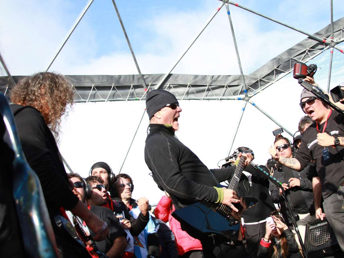 Dentro de uma cúpula transparente, de 12 metros de diâmetro e seis de altura, com a beleza das intensas águas azuis da enseada Porter e o branco da geleira Fourcade como cenário, o Metallica descarregou a força do heavy metal mas, sem amplificadores, só foi possível ouvir o show usando fones de ouvido.