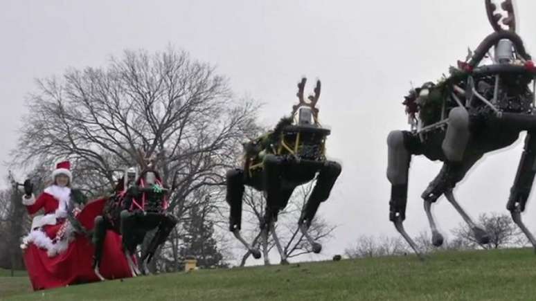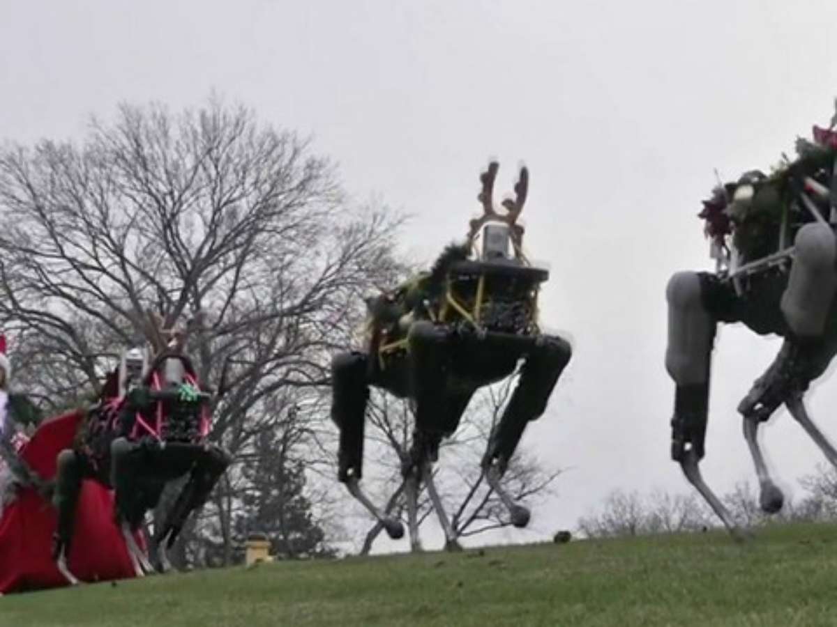 Em demonstração da Boston Dynamics, máquinas puxaram o trenó do Papai Noel