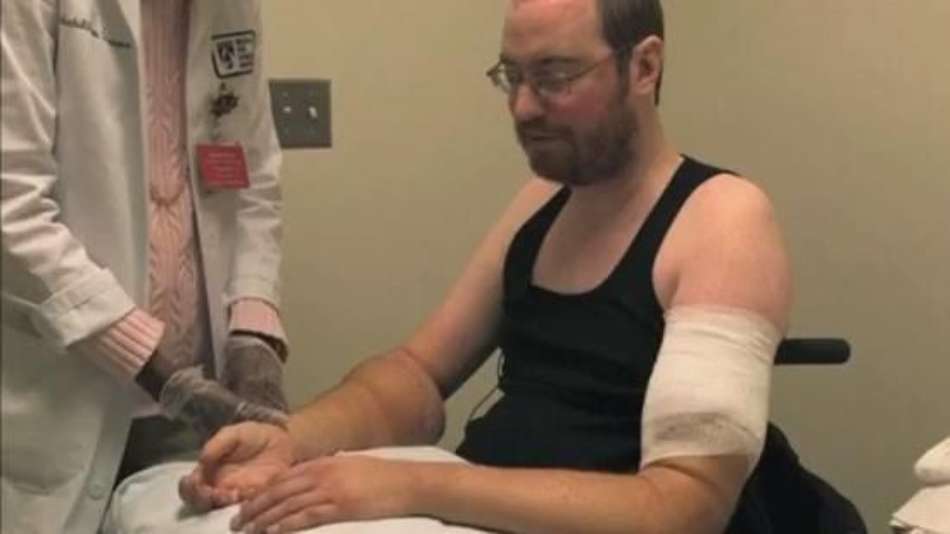 Ciência Após transplante de braços, paciente quer abraçar namorada Exibir comentários Compartilhar Nos EUA, homem de 40 anos que tinha perdido os braços e pernas por causa de uma infecção agora se recupera em Boston de cirurgia que durou 9 horas Reuters Publicidade