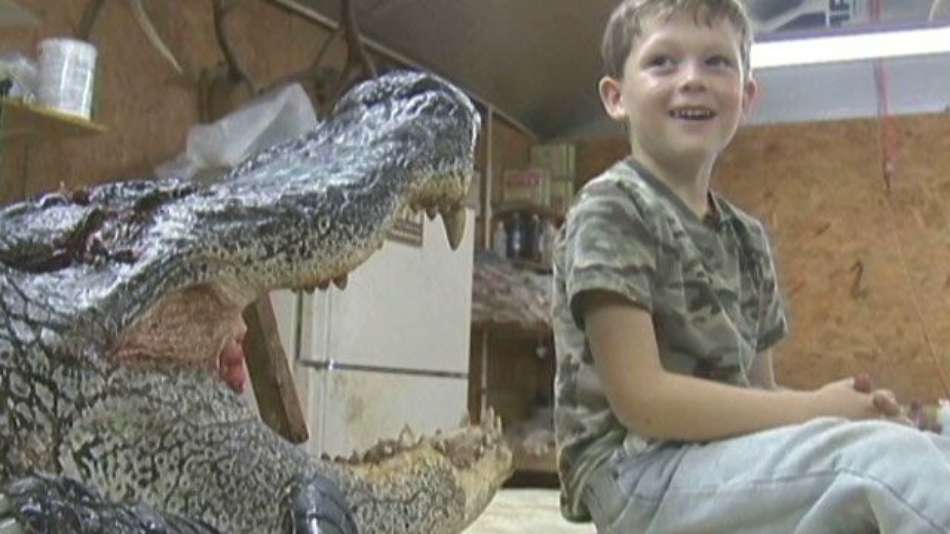 Ciência Garoto de 5 anos mata jacaré de mais de 360 kg Exibir comentários Compartilhar Criança, que aprendeu a caçar com o pai, deu o tiro fatal no jacaré; animal estava espantando jacarés menores da região Reprodução Publicidade