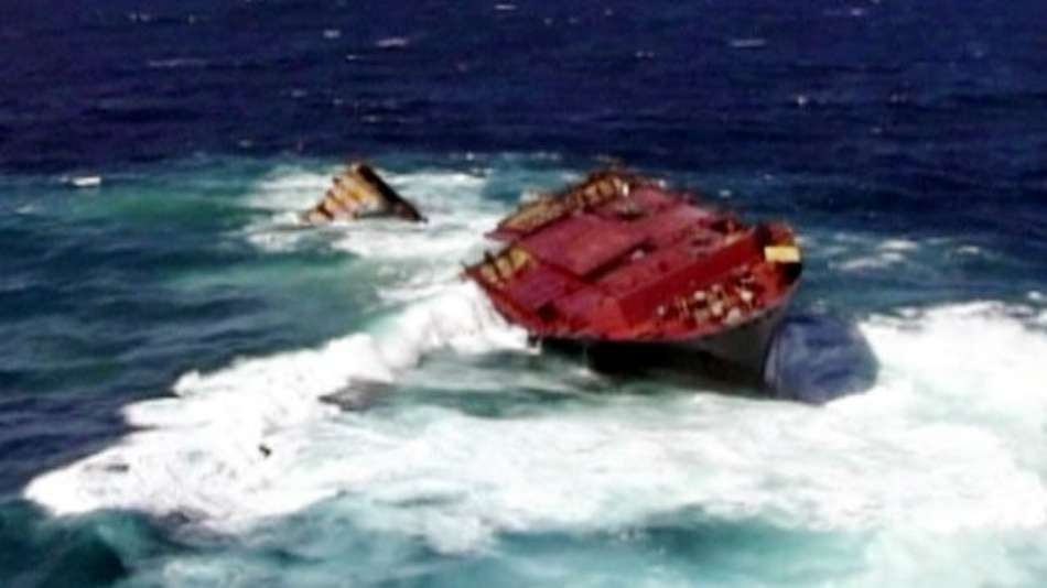 Ciência Ondas "engolem" parte de navio encalhado na Nova Zelândia; veja Exibir comentários Compartilhar Cargueiro está encalhado no litoral do país desde outubro do ano passado; na época, cerca de 350 t de óleo vazaram no mar Reuters Publicidade
