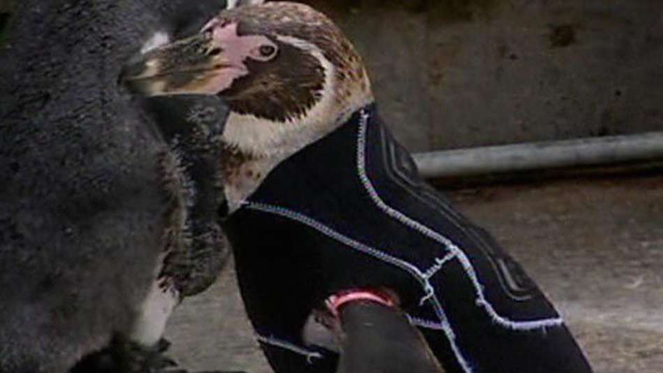Ciência Pinguim careca ganha roupa que o protege do sol Exibir comentários Compartilhar Animal que vive em zoo da Inglaterra perdeu todas as penas em um só dia e ganhou traje especial para não se queimar Reuters Publicidade
