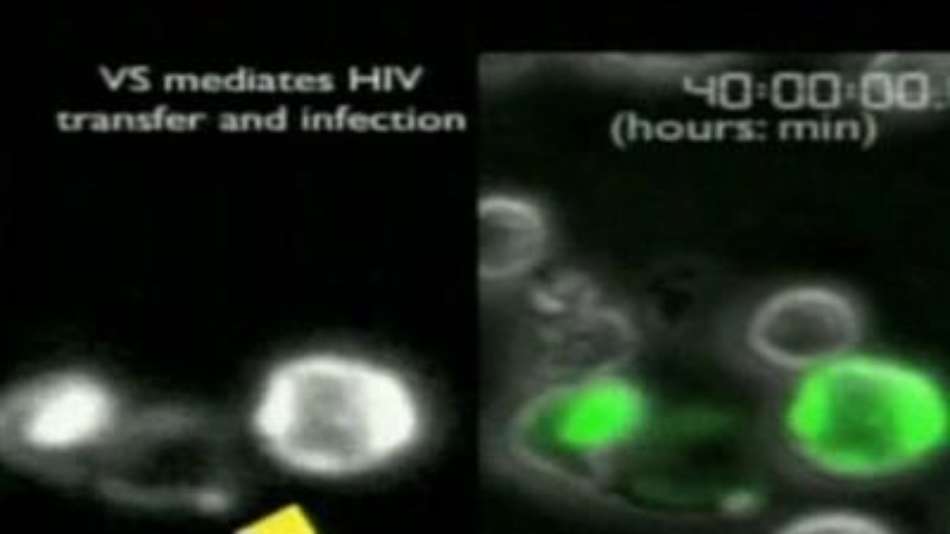Ciência Vídeo mostra vírus HIV passando entre células Exibir comentários Compartilhar Estudo foi feito em Nova York; imagens mostram transmissão do vírus de uma célula contaminada para outra saudável Reuters Publicidade