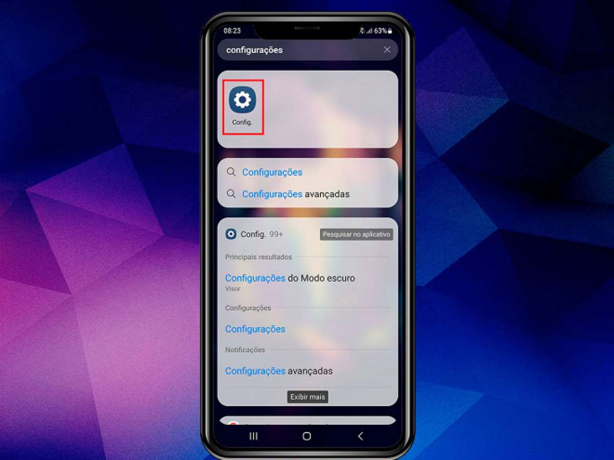 Acesse o menu de Configurações. Você pode fazer isso através da central de notificações ou pela própria barra de pesquisa de aplicativos;