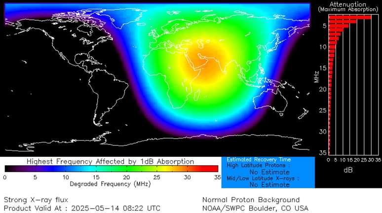 Ao impactar a atmosfera superior da Terra, essa radiação a ionizou rapidamente, interferindo nos sinais de rádio de alta frequência (HF) na face visível do nosso planeta. Como resultado, foi detectado um apagão de rádio de nível R3 (classificado como "forte") na Europa, Ásia e Oriente Médio.