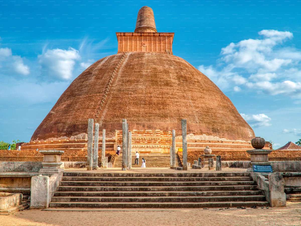A construção que domina esse conjunto recebe o nome de Jetavanaramaya e sua escala é difícil de assimilar sem se deter nos números. A estupa (construção budista em forma de cúpula) foi concluída por volta do ano 301 d.C., utilizando cerca de 93,3 milhões de tijolos ...