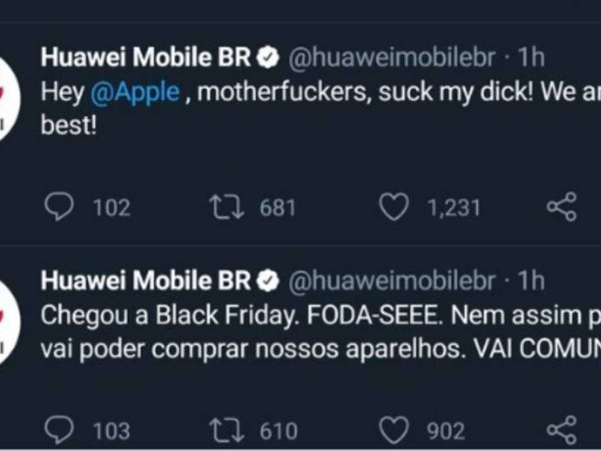A Huawei teve uma madrugada inusitada no Brasil nesta quinta, 28. Uma das contas da empresa no Twitter passou a disparar mensagens ofensivas aos clientes e a concorrentes, como a Apple - o perfil da empresa que publicou as mensagens é justamente o dedicado para a divisão de telefones celulares e relógios.