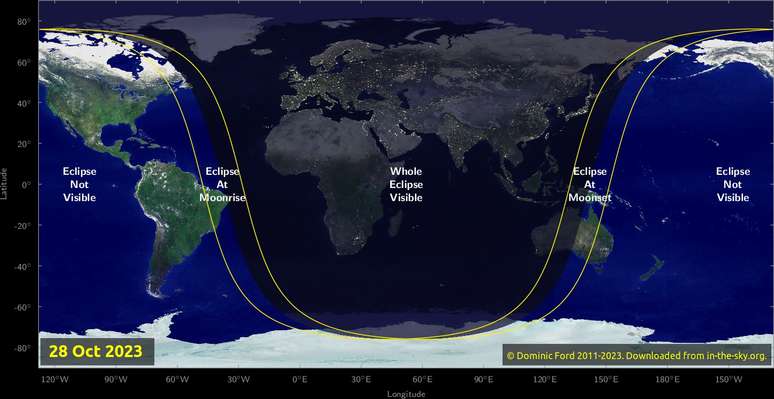 O espetáculo celestial terá início no sábado, 28 de outubro, coincidentemente com a Lua do Caçador, lua cheia do mês de outubro. Classificado como um eclipse lunar parcial, uma vez que, neste momento, a Terra, a Lua e o Sol não estarão perfeitamente alinhados, o fenômeno será visível de todo mundo, mas alguns locais conseguirão vê-lo completo, enquanto outros poderão ver apenas parte dele.
