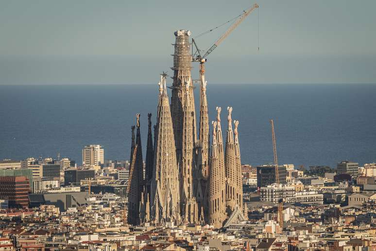 Após 144 anos de construção, basílica atinge altura máxima com cruz de 17 metros e entra na fase final da obra em Barcelona