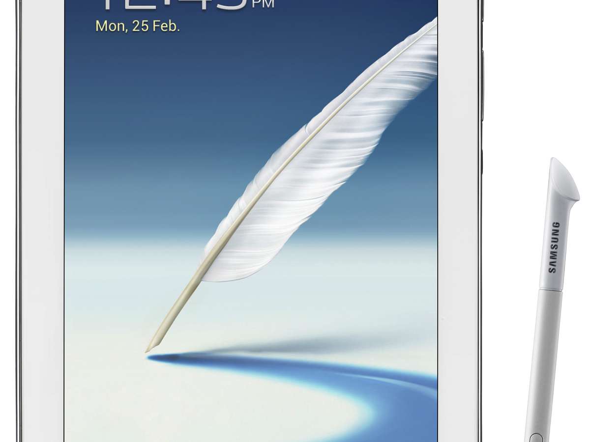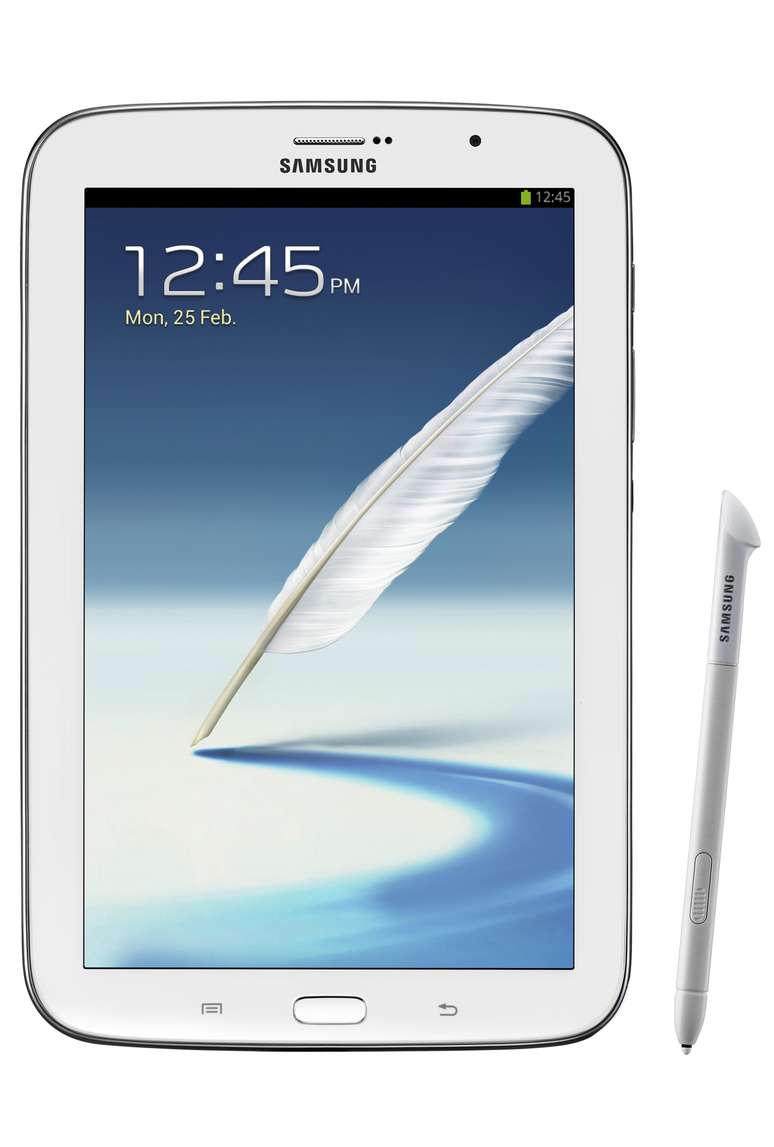 A Samsung mostrou o tablet Galaxy Note 8, que roda Android Jelly Bean, tem processador de 1,9 GHz, conectividade 3G/HSPA+ capaz de fazer ligações, tela de 8 polegadas e 2 GB de RAM