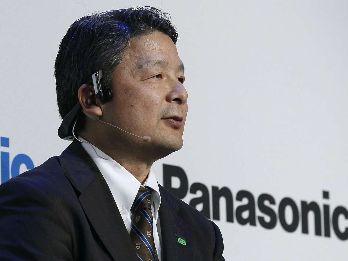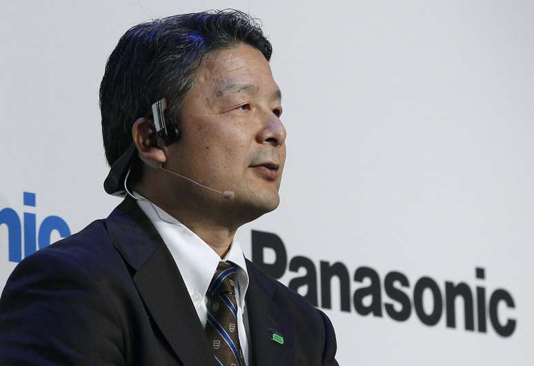 O presidente da Panasonic para a América do Norte, Shiro Kitajima, mostra os fones de ouvido que transmitem o som por condução óssea. O aparelho deixa o ouvido livre para que o usuário ouça sua música ao mesmo tempo que não deixa de escutar os sons do ambiente