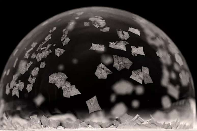 Quando uma bolha de sabão entra em contato com uma superfície congelada, se a temperatura ambiente estiver baixa o suficiente, podemos testemunhar um fenômeno particularmente curioso. Isso porque a bolha congela de uma maneira pouco convencional, com pequenos cristais de gelo surgindo ao redor da bolha, de forma aleatória. Mas por que isso acontece?