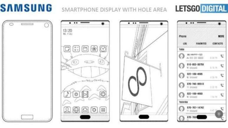 Rumores apontam para uma parte frontal inteiramente de vidro e completamente sem bordas. Há quem diga que o scanner de impressão digital retornará para a frente, sob o display Super AMOLED e integrado às câmeras e sensores.