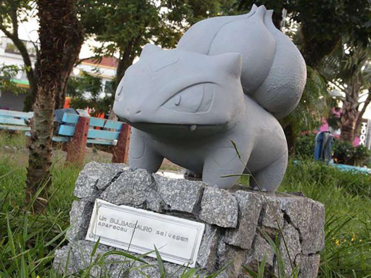 Uma estátua gigante de um Bulbassauro apareceu em uma praça da cidade de Suzano, na Grande São Paulo, neste domingo (25). A peça, que é uma representação fiel do Pokémon e está sobre um bloco de pedras com uma placa que diz "Um Bulbassauro selvagem apareceu", fazendo referência aos dizeres que surgem sempre que um Pokémon dá as caras nos jogos da Nintendo.