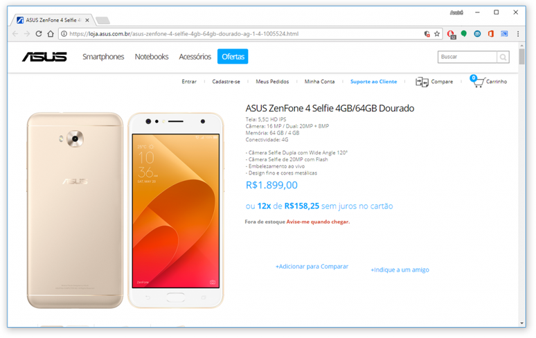 EXCLUSIVO: Zenfone 4 Selfie aparece na loja da Asus Brasil por R$ 1.899