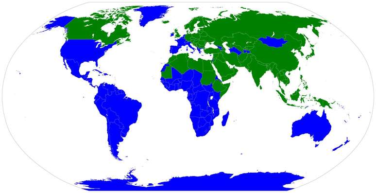 Para ilustrar, o mapa que você vê abaixo e no topo deste artigo é da Wikimedia: em verde, os países onde as pessoas tiram os sapatos ao chegar em casa e, em azul, aqueles onde isso não acontece. Tendemos a associar esse costume ao Japão e, embora seja provavelmente o país mais conhecido onde é praticado, não é o único. Essencialmente, quase toda a Ásia tira os sapatos, assim como o Norte da África e o Canadá.
