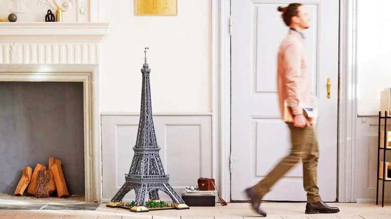 A Torre Eiffel de LEGO também não é adequada para prateleiras. Pelo menos não se você não mora em um castelo com tetos extremamente altos e cômodos grandes. Com 1,49 metro, o modelo não é apenas bastante alto, mas com 57x57 centímetros, também não economiza espaço.
