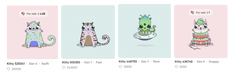 Ainda relativamente pouco conhecido, o Cryptokitties afirma ser o primeiro game a usar a arquitetura que permite o funcionamento do dinheiro virtual. Só que, aqui, a "moeda" de troca são gatinhos virtuais com características únicas, que podem ser adquiridos usando ether. Mais ou menos como em um sistema de pedigree, os mais bonitos, claro, custam mais caro, um valor que costuma ser definido por curtidas feitas pelos usuários do jogo.
