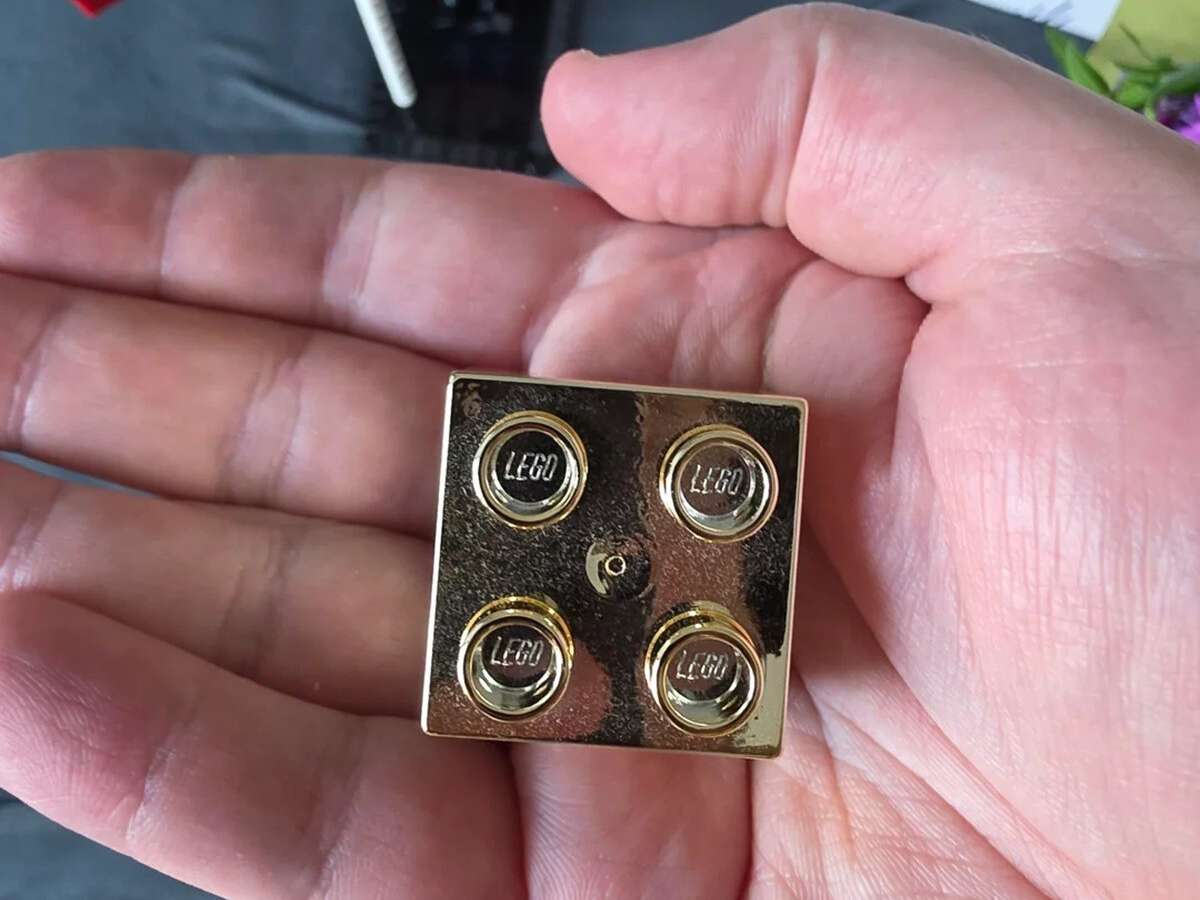 Funcionário da Lego mostra o que ganhou no seu quarto aniversário de empresa - um tijolo dourado que agora nós também queremos