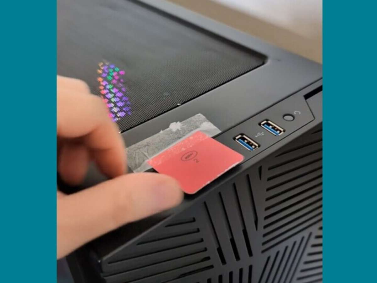 O usuário Shmikken mostra em um vídeo curto como protegeu o botão de ligar do seu PC com uma capa improvisada. Um pedaço de papelão resistente, preso com fita adesiva, pode ser levantado para ligar o PC normalmente, mas, ao mesmo tempo, impede de forma confiável que o gato pressione o botão acidentalmente.