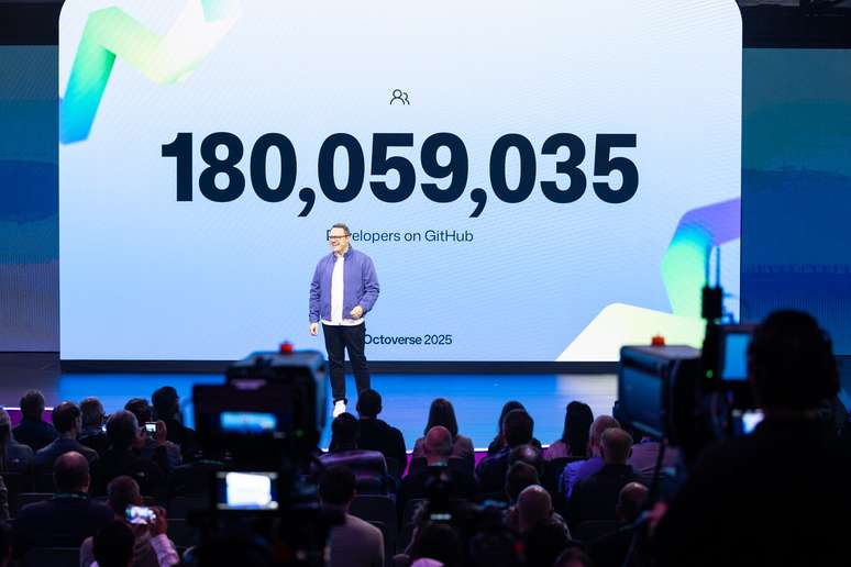 Durante uma coletiva no GitHub Universe, evento da plataforma o qual o Xataka Brasil está presencialmente, com Kyle Daigle (COO), Mario Rodriguez (CPO) e Jay Parikh, vice-presidente executivo da Microsoft, o GitHub apresentou uma visão otimista e ambiciosa sobre o futuro do desenvolvimento de software. A aposta da empresa é clara: a inteligência artificial vai transformar completamente a forma como o mundo cria tecnologia.