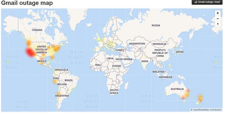 Nova Zelândia, Austrália e Japão parecem fortemente afetados pelos problemas do Gmail. Várias partes da Europa parecem enfrentar dificuldades em menor escala. As informações são do DownDetector, plataforma especializada em identificar problemas em serviços populares da internet.