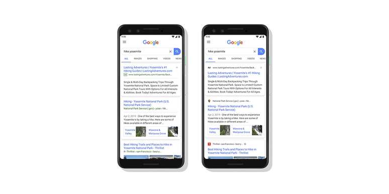 Além disso, a seção dedicada a anúncios aparecerá de forma mais suave, mostrando links patrocinados no topo da tela com um leve destaque em negrito para sinalizar o conteúdo promovido — antes isso era evidenciado na cor verde. A aposta da Google é que a modificação possa ajudar seus usuários a identificarem melhor a origem dos resultados de pesquisa.