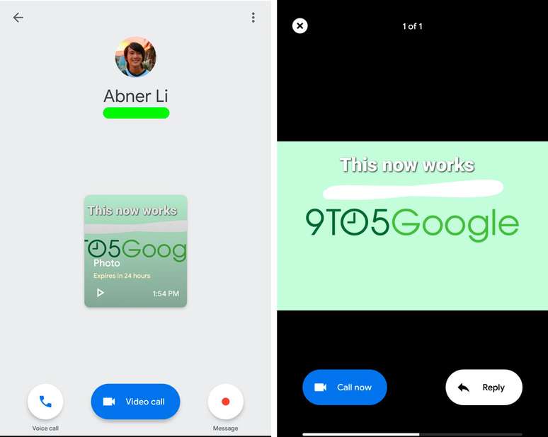 A foto aparece na página do contato e pode ser vista por tempo limitado. (Fonte: 9to5Google/Reprodução)