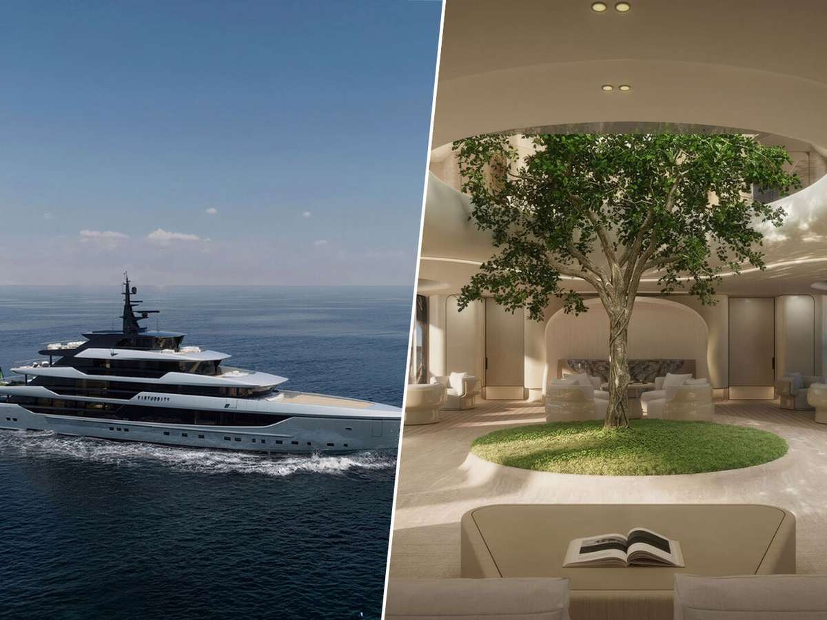 A peça central do Virtuosity é uma Ficus nitida, também conhecida como louro-da-índia, plantada no convés principal deste luxuoso superiate de design moderno e elegante. Vale ressaltar que a árvore não foi adicionada depois que o iate já estava construído, mas sim selecionada antes da montagem do primeiro bloco estrutural da embarcação, e todo o iate foi construído ao seu redor.