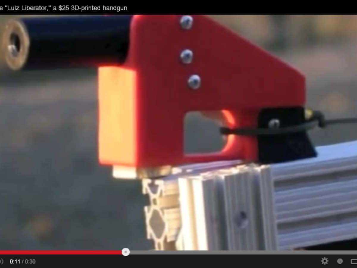 Em maio, a Defense Distributed, empresa que criou e divulgou o primeiro modelo de arma 3D, foi forçada pelo Departamento de Estado dos EUA a retirar do seu site os moldes online para impressão. Porém, pode-se imprimir através de sites como The Pirate Bay.