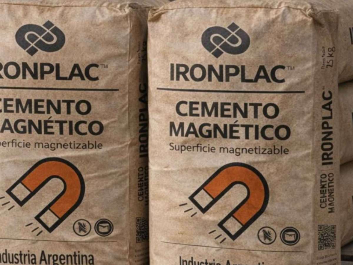 O Ironplac não utiliza eletricidade nem atua como um ímã ativo. O efeito magnético vem de uma mistura com cargas minerais e partículas ferrosas, que permite à superfície interagir com objetos imantados.