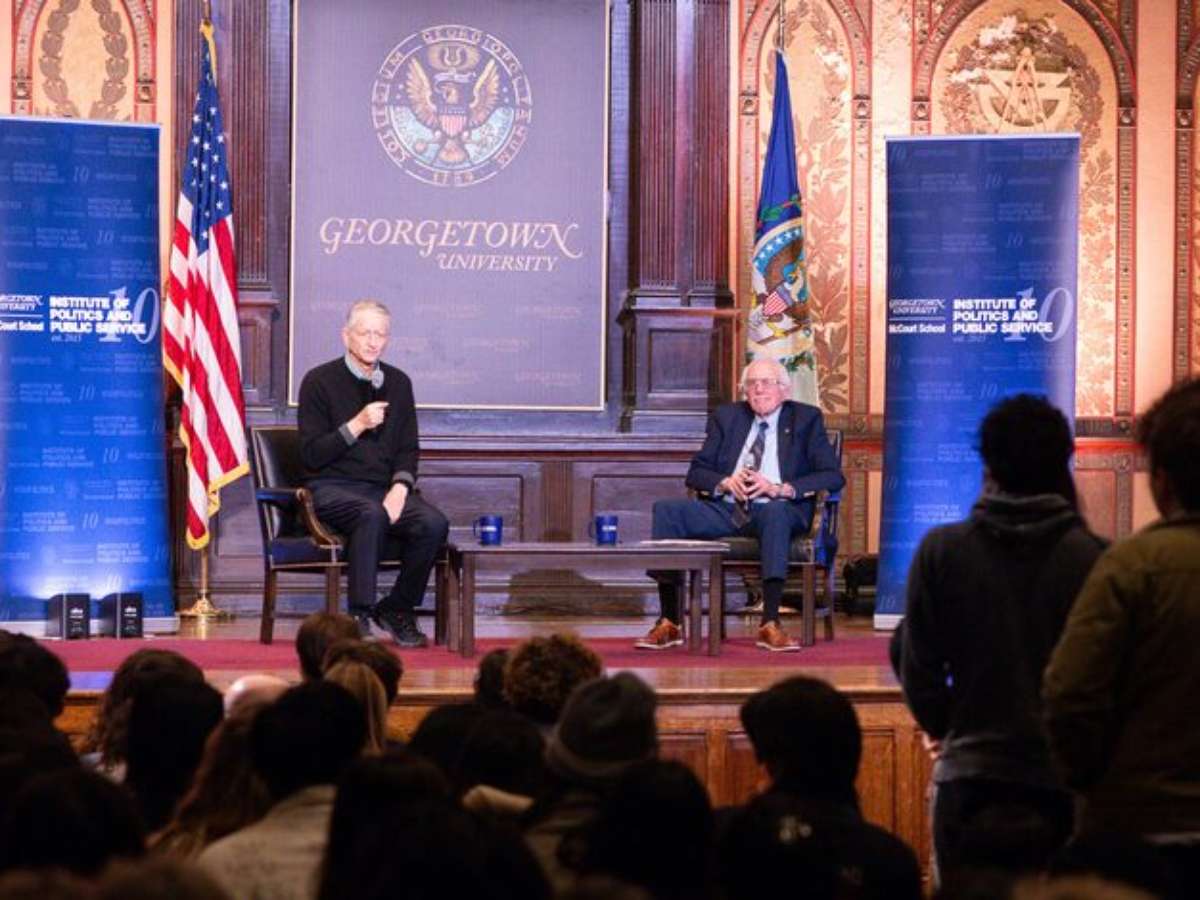 No dia 19 de novembro de 2025, a Universidade de Georgetown, em Washington, recebeu uma conversa pública entre o senador Bernie Sanders e o cientista da computação vencedor do prêmio Nobel Geoffrey Hinton, considerado um dos "padrinhos da IA". O evento, realizado no auditório Gaston Hall e organizado pelo Instituto de Políticas e Serviços Públicos, discutiu os efeitos sociais e econômicos da inteligência artificial e seu potencial de remodelar a força de trabalho global.