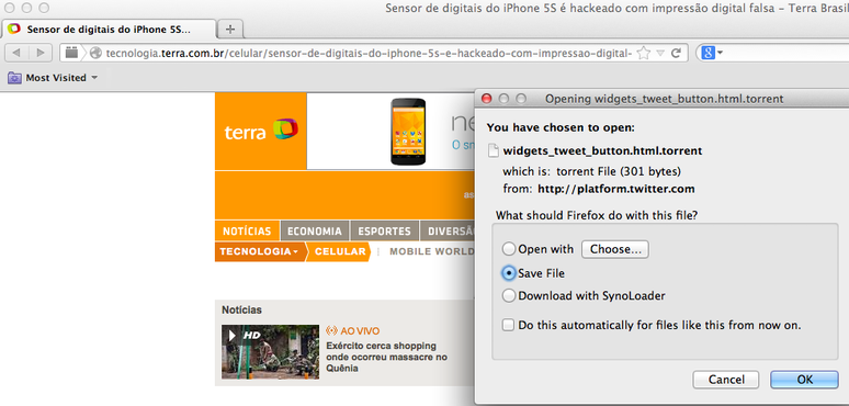 Falha no Twitter origina download de arquivo torrent