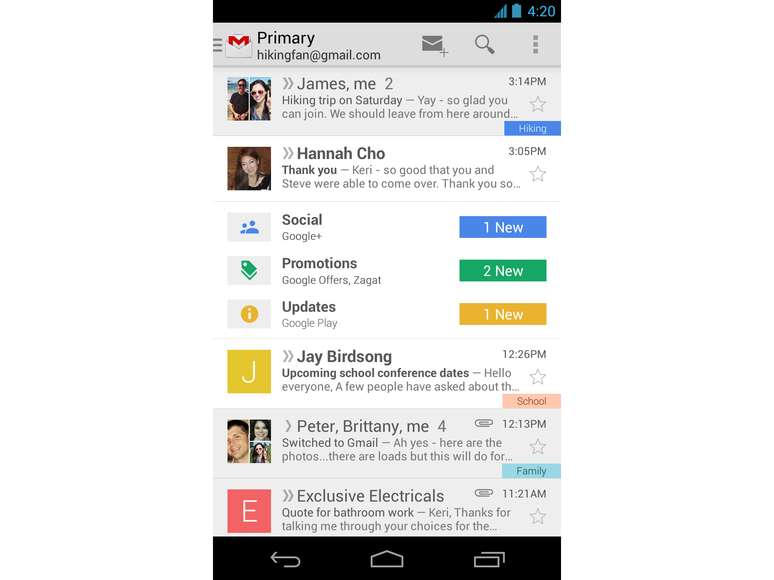 Após seu lançamento o e-mail atraiu o olhar dos usuários que, utilizavam no máximo 6 MB de espaço em caixas de outras empresas como MSN Hotmail (hoje Outlook.com) e Yahoo! Mail. O design do site do Gmail é baseado em um sistema de conversação, parecido com um chat ou sites de fórum.