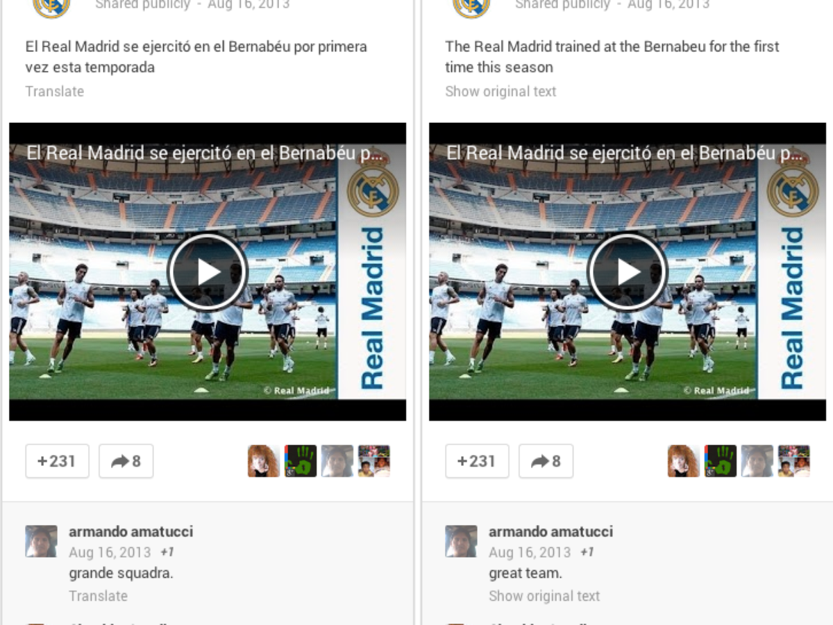 O Google anunciou nesta terça-feira um novo recurso que traduz os posts públicos ou comentários no Google+. Sempre que uma postagem for escrita em uma língua diferente da que o usuário fala, a rede social mostrará um botão "Traduzir" logo abaixo do post.