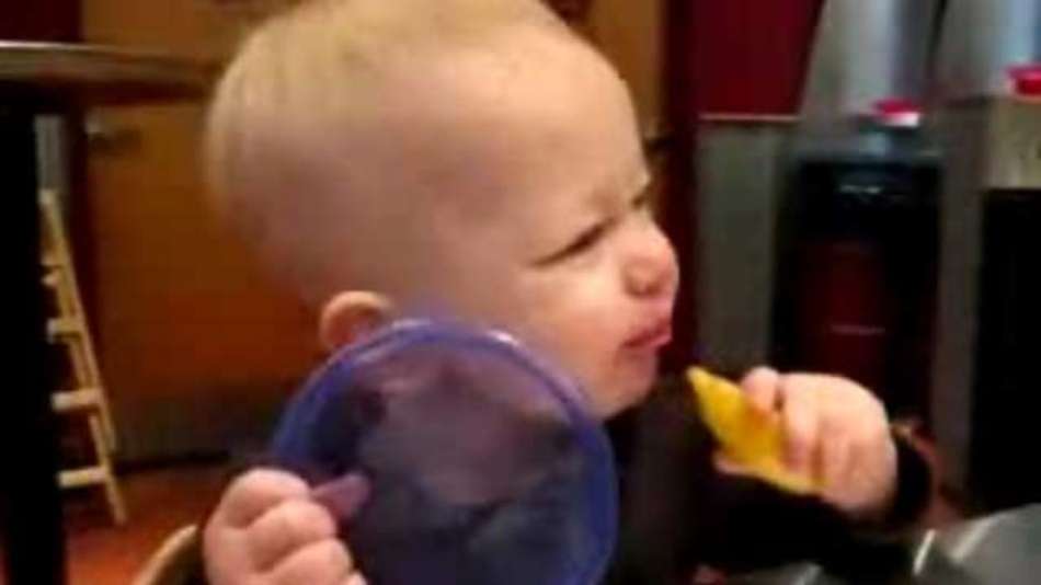 Hits da Web Bebê faz careta, mas continua chupando limão Exibir comentários Compartilhar Acidez da fruta incomoda, mas ele não resiste e volta a colocá-la na boca Divulgação Publicidade