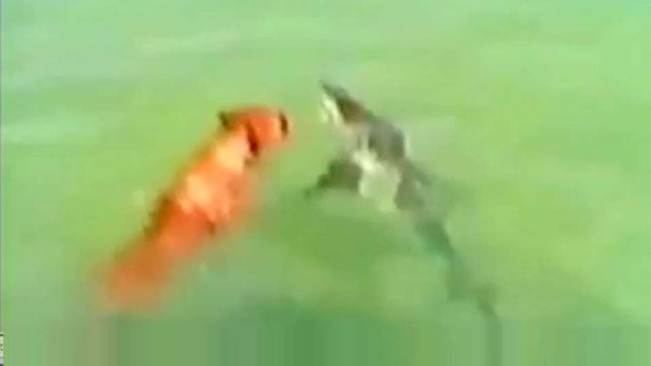 Hits da Web Cachorro salta de barco e "pesca" tubarão ; confira cena Exibir comentários Compartilhar O cachorro morde o tubarão e o carrega até a beira do mar; vídeo postado no YouTube Hits da Web Publicidade
