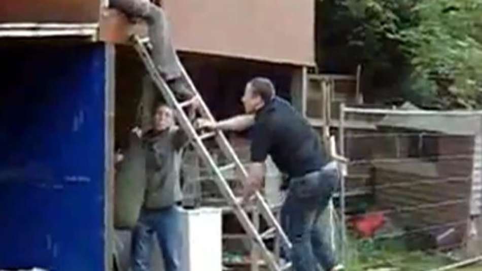 Hits da Web Homem tenta ajudar amigo e cai de escada Exibir comentários Compartilhar Ele tentava resgatar o outro de uma casa de árvore, mas nada deu certo; não há mais informações sobre o vídeo tirado da Internet Reprodução Publicidade