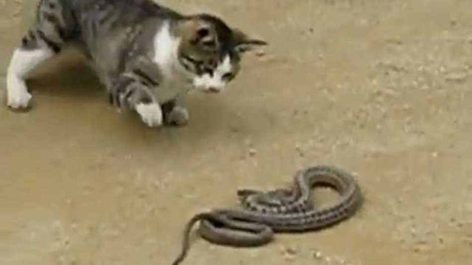 Hits da Web Vídeo flagra combate entre gato e cobra Exibir comentários Compartilhar Felino leva a melhor e aparentemente mata o réptil; não há dados sobre local e data da gravação Reprodução Publicidade