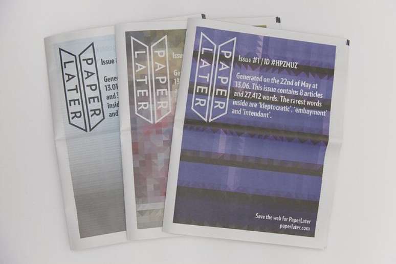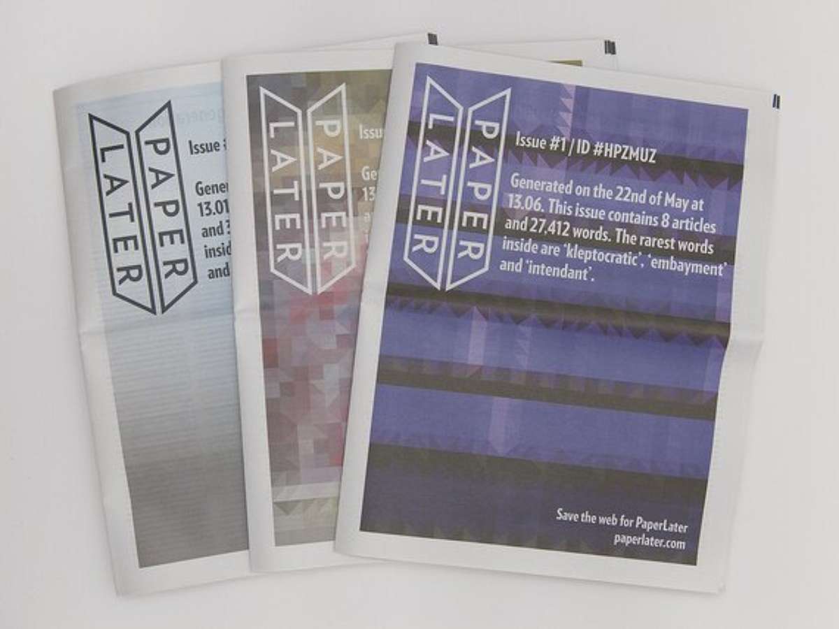 O Paper Later é uma aplicação criada pela empresa Newspaper Club. Ao custo de 5 libras a edição, ela permite ao usuário selecionar o post via aplicação móvel e mandá-la para impressão em papel jornal.