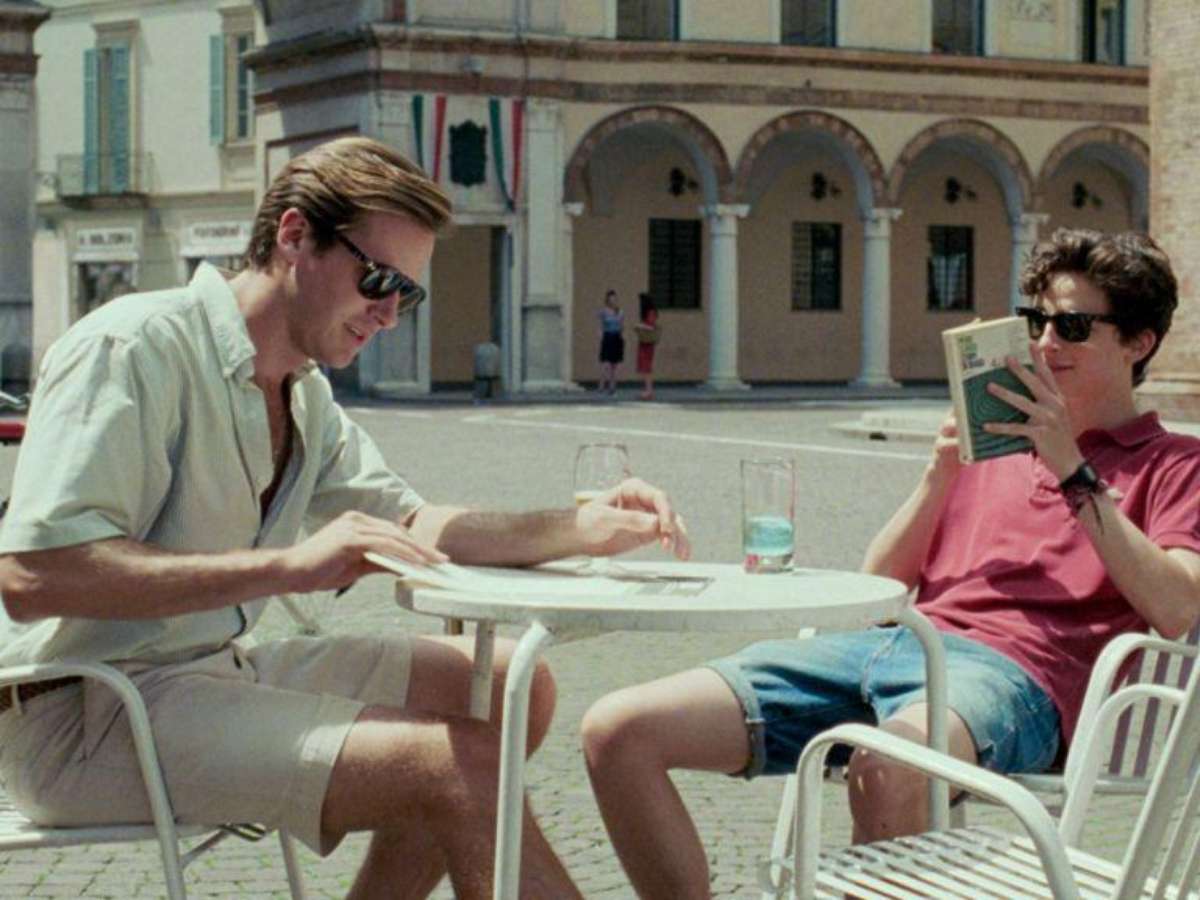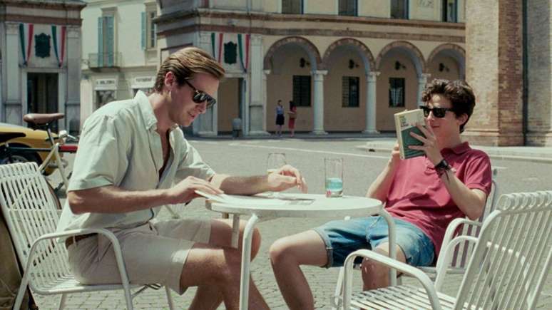 Oliver é interpretado por Armie Hammer e Elio por Timothée Chalamet.