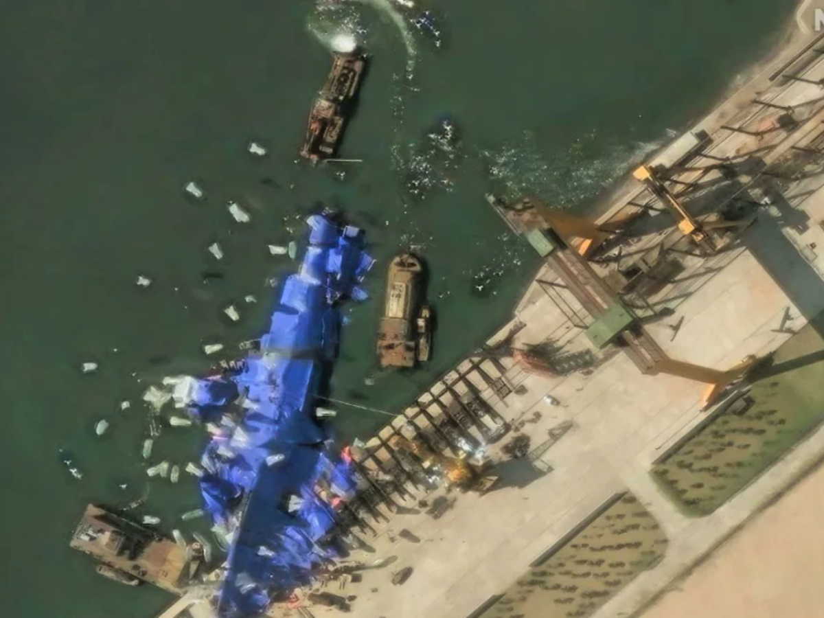 "Maior navio de guerra" da Coreia do Norte afundou instantaneamente e agora estão tentando recuperá-lo com... balões