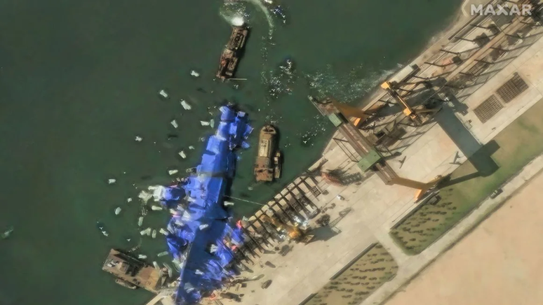 Imagens de satélite no fim de semana revelaram o aparecimento de aparentes balões ao redor do navio. Especialistas sul-coreanos e ocidentais especulam que eles podem ter diversas funções: evitar novas infiltrações de água, impedir o reconhecimento por drones e até mesmo aliviar o peso que recai sobre a parte ainda encalhada no cais.