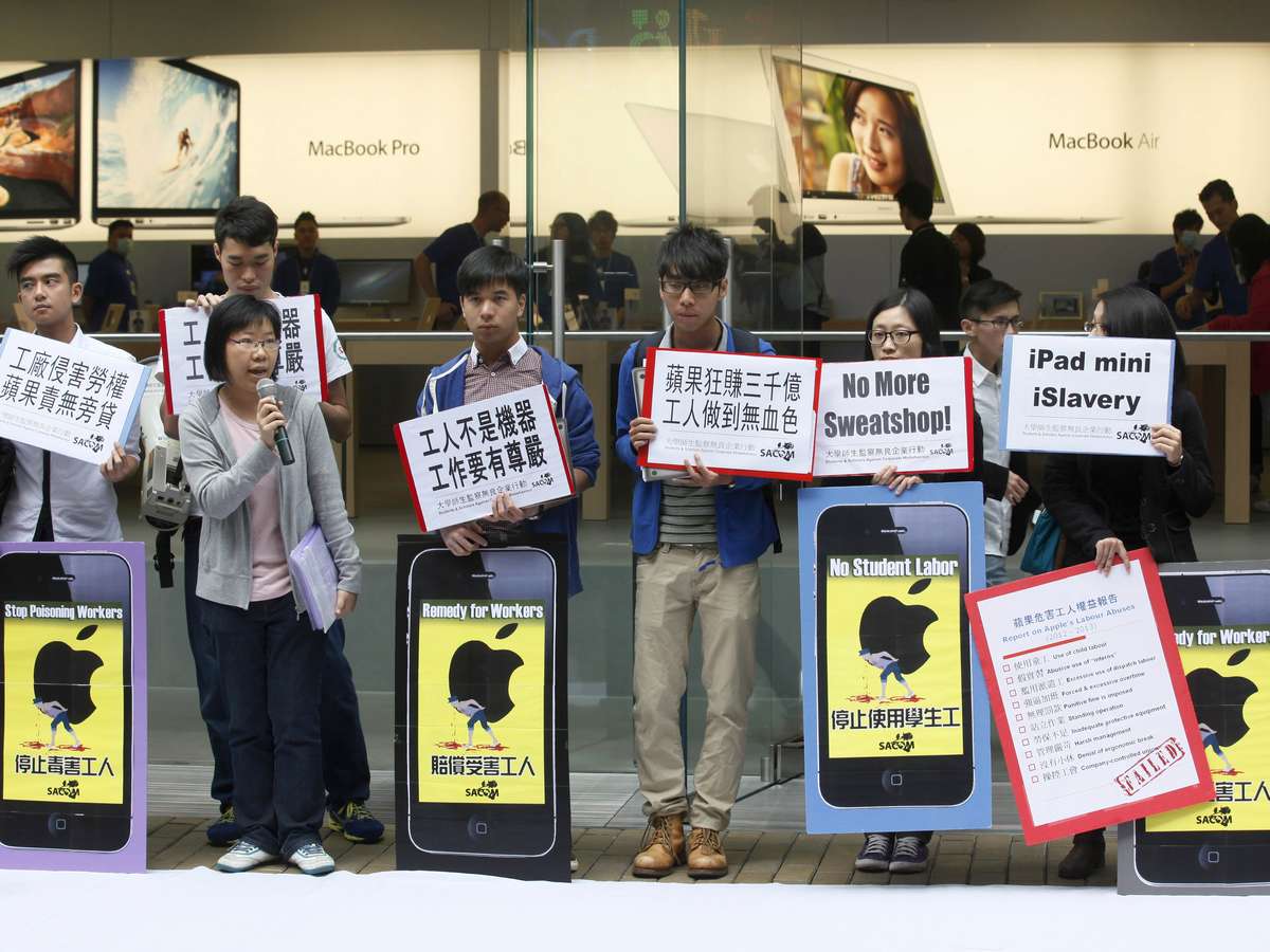 Estudantes e ativistas fizeram um protesto nesta terça-feira em Hong Kong em frente a uma loja da Apple. A manifestação foi motivada por alegações de práticas duras de trabalho utilizadas por fornecedores da empresa na Ásia. O grupo apela aos acionistas da Apple que aumentem a força de trabalho na cadeia produtiva da Apple.