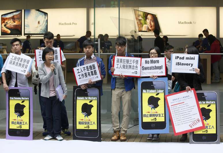 Estudantes e ativistas fizeram um protesto nesta terça-feira em Hong Kong em frente a uma loja da Apple. A manifestação foi motivada por alegações de práticas duras de trabalho utilizadas por fornecedores da empresa na Ásia. O grupo apela aos acionistas da Apple que aumentem a força de trabalho na cadeia produtiva da Apple