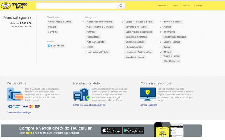 Todos os anúncios gratuitos já virão com o serviço de pagamentos MercadoPago e o serviço MercadoEnvios