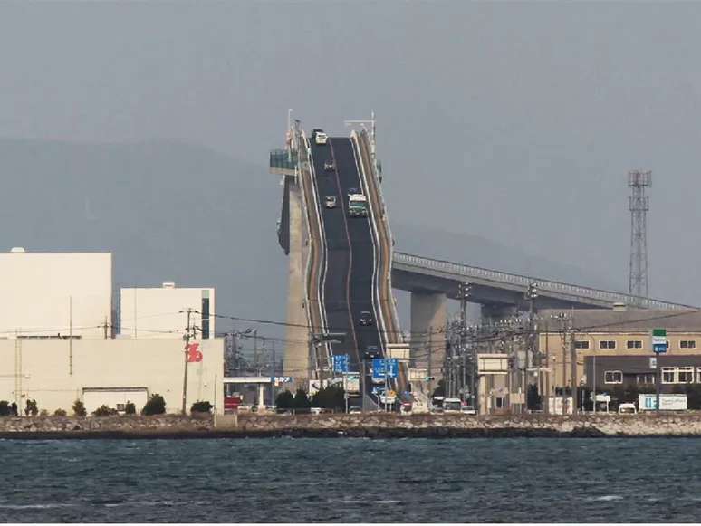 A ponte Eshima Ohashi, localizada no Japão, acabou ficando famosa na internet por aparentar ser muito mais íngreme do que realmente é, enganando o olhar de quem vê a construção à distância.