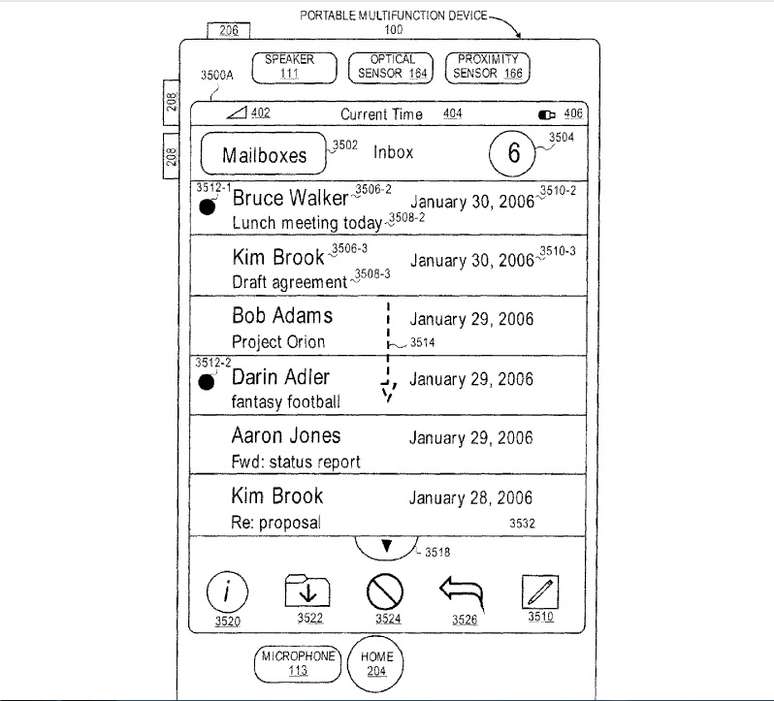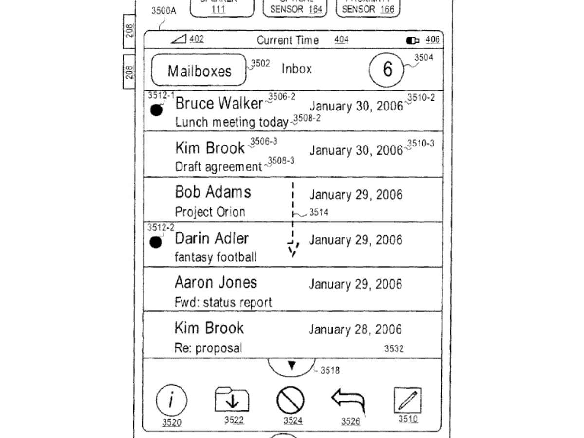 O U.S. Patent and Trademark Office, na quarta-feira, invalidou provisoriamente a patente sobre o zoom por movimento diagonal de dedos em uma tela de toques, uma das patentes mencionadas no julgamento em agosto. O recurso de zoom por movimento diagonal distingue entre toque em um ponto da tela e toque em múltiplos pontos, e permite que o usuário aumente ou diminua a imagem na tela por meio de movimento diagonal de dois dedos.